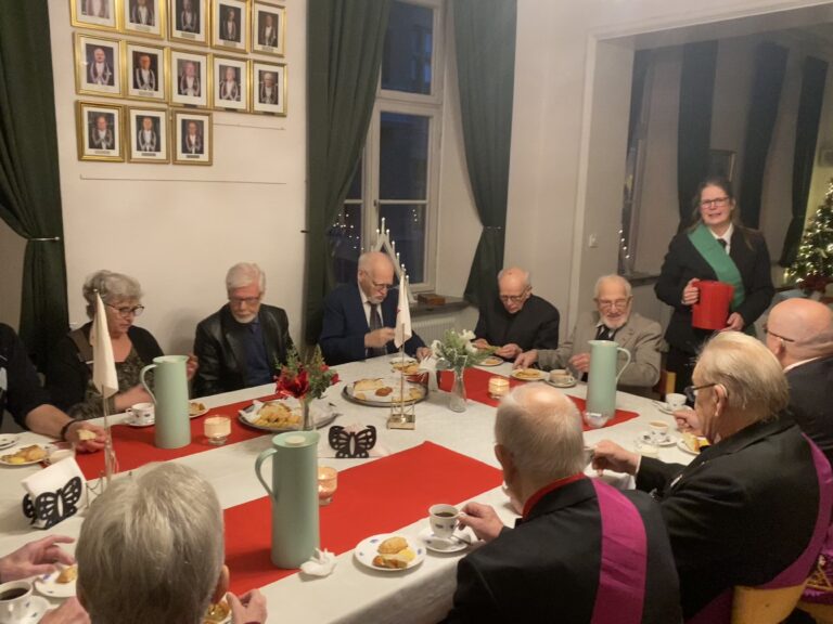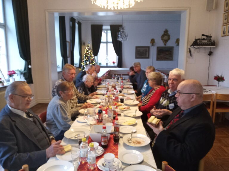 Lördag 6 december 2025 samlades vi 17 personer för vår årliga julfest med fantastiskt god hemgjord julgröt. Anna Pollack, skinksmörgås och kaffe med lussebulle. Julsånger framfördes av Nils-Gunnar Belin. Sammankomsten avslutades med en kort Julbetraktelse.